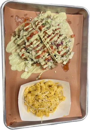 fresh cracked eggs, vanilla, cinnamon, cream, maple syrup and brioche' bread scraps. All mixed together, panned up and smoked with pecan wood. Then we seared it on the flat top with real butter and serve it with our delicious blueberry lime compote.